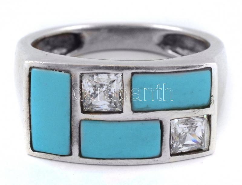 Beschreibung: Ezüst(Ag) gyűrű, türkiz színű kővel, jelzett, méret: 58, bruttó: 5,9 g