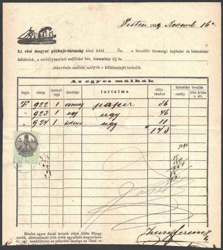 1869 A Első Magyar Gőzhajózási Társaság Honvéd hajó fuvarlevele szakad... https://www.darabanth.com/de/367-Fernauktion/367.0/Kunst-Dokumente-andere-Sammelgebiete/Dokument~18/1869-A-Elso-Magyar-Gozhajozasi-Tarsasag-Honved-hajo-fuvarlevele-szakadassal-Bill-of-frigh~II2128599