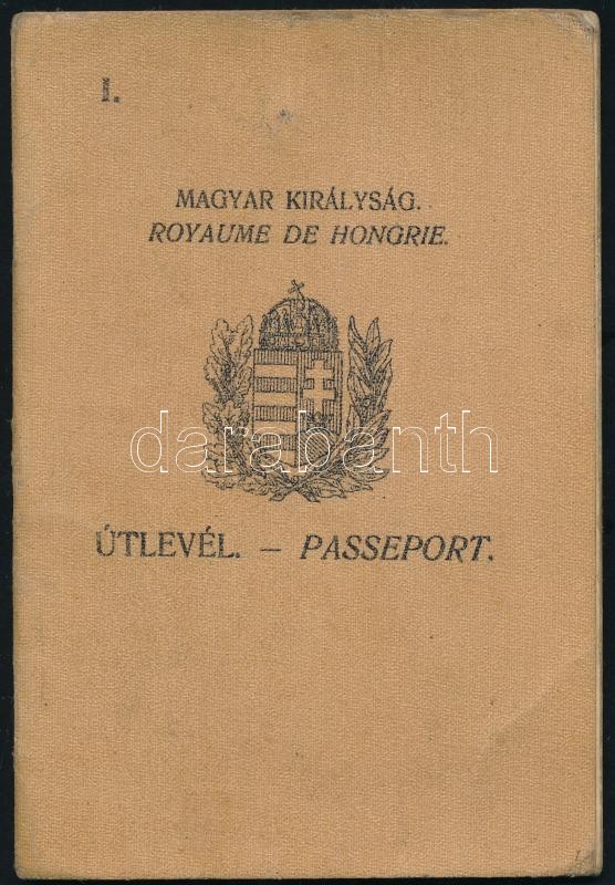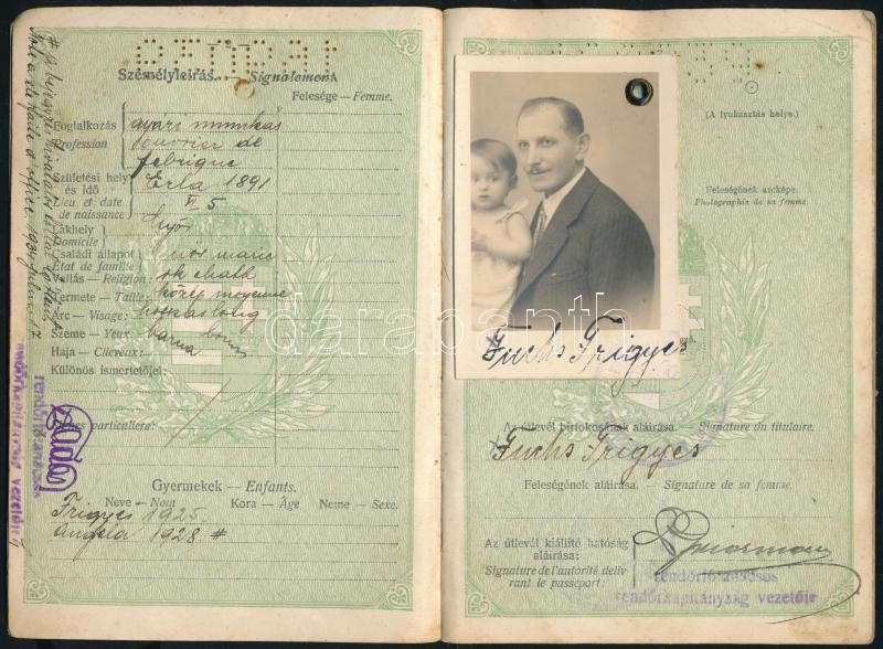 1931 Győr, Magyar Királyság által kiállított fényképes útlevél / Hunga... https://www.darabanth.com/de/367-Fernauktion/367.0/Kunst-Dokumente-andere-Sammelgebiete/Dokument~18/1931-Gyor-Magyar-Kiralysag-altal-kiallitott-fenykepes-utlevel-Hungarian-passport~II2126860