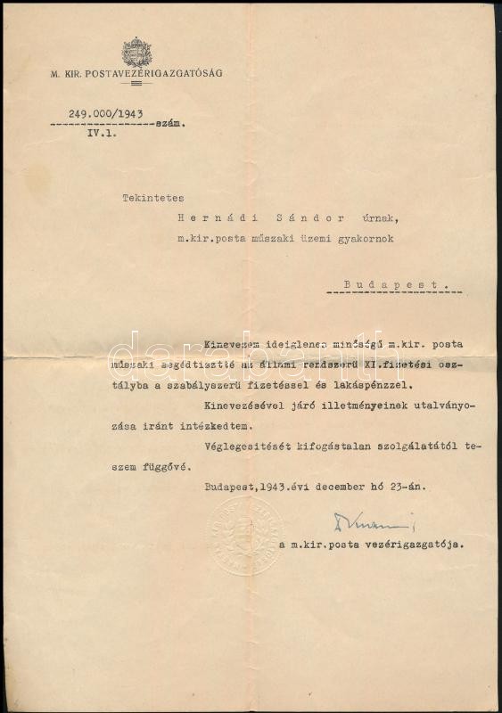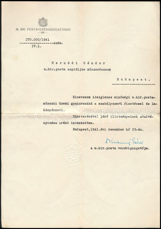 1941-1943 2 db m. kir. postai kinevezés, fejléces papíron, dr. Kuzmich... https://www.darabanth.com/de/367-Fernauktion/367.0/Kunst-Dokumente-andere-Sammelgebiete/Dokument~18/1941-1943-2-db-m-kir-postai-kinevezes-fejleces-papiron-dr-Kuzmich-Gabor-1886-1958-a-m-ki~II2127873