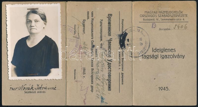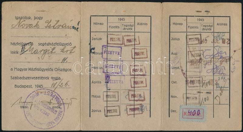 1945 Magyar Házfelügyelők Országos Szabadszervezete által kiállított f... https://www.darabanth.com/de/367-Fernauktion/367.0/Kunst-Dokumente-andere-Sammelgebiete/Dokument~18/1945-Magyar-Hazfelugyelok-Orszagos-Szabadszervezete-altal-kiallitott-fenykepes-ideiglenes-t~II2125782