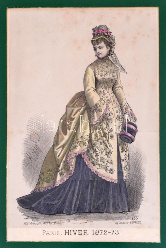 1872-73 Divatlap illusztráció, Paris Hiver, kézzel színezett litográfi... https://www.darabanth.com/de/367-Fernauktion/367.0/Kunst-Dokumente-andere-Sammelgebiete/Drucksachen~31/1872-73-Divatlap-illusztracio-Paris-Hiver-kezzel-szinezett-litografia-papir-hajtasnyommal~II2126905