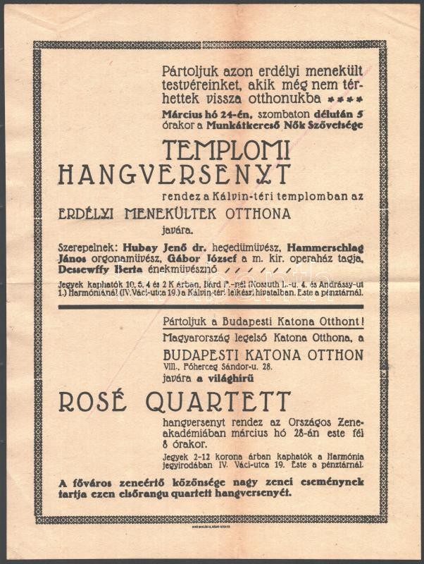 1916 Román betörési miatti erdélyi menekültek javára adott hangverseny... https://www.darabanth.com/de/367-Fernauktion/367.0/Kunst-Dokumente-andere-Sammelgebiete/Drucksachen~31/1916-Roman-betoresi-miatti-erdelyi-menekultek-javara-adott-hangverseny-plakatja-24x31-cm~II2130047