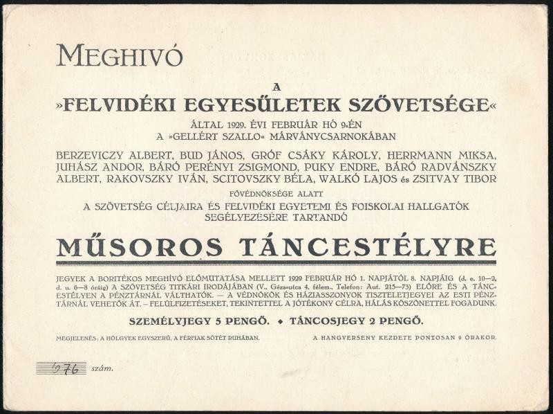 1929 Felvidéki Egyesületek Szövetsége táncestély meghívó, számozott, 6... https://www.darabanth.com/de/367-Fernauktion/367.0/Kunst-Dokumente-andere-Sammelgebiete/Drucksachen~31/1929-Felvideki-Egyesuletek-Szovetsege-tancestely-meghivo-szamozott-6-oldal-18-5x24-5-cm~II2129345