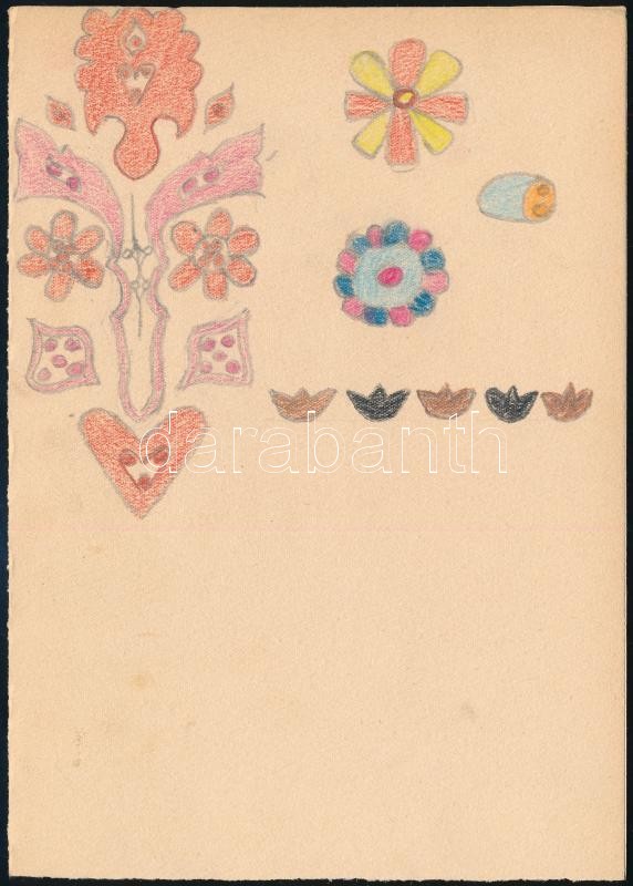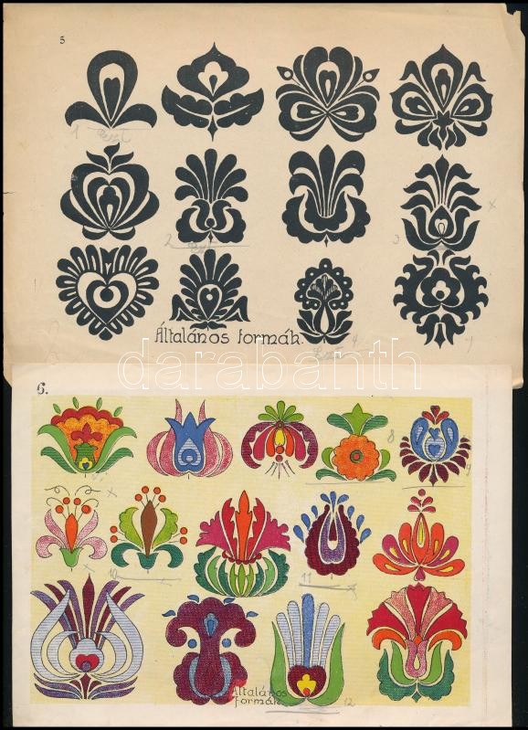 Beschreibung: cca 1933 Magyar motÃvumok gyűjteménye XXXVI lapon. Subert Zoltán III. oszt. tanuló. ÖsszeállÃtotta Gergely János t. Valóságban több mint 70 db nyomat és 1 db rajz népi motÃvumokkal a történelmi Magyarország különbözÅ‘ területeirÅ‘l (Székelyföld, Kalotaszeg, Dunántúl, Palócföld, Borsod-Gömör megye stb.) Részben kisebb szakadásokkal. Nyomatok mérete: ca. 16x21,5 cm, Rajz ca. 12x14 cm.