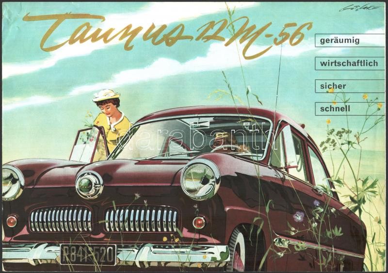 cca 1952-1962 Ford Taunus 12M-56 német nyelvű személygépkocsi prospekt... https://www.darabanth.com/de/367-Fernauktion/367.0/Kunst-Dokumente-andere-Sammelgebiete/Drucksachen~31/cca-1952-1962-Ford-Taunus-12M-56-nemet-nyelvu-szemelygepkocsi-prospektus-illusztraciokkal~II2109427