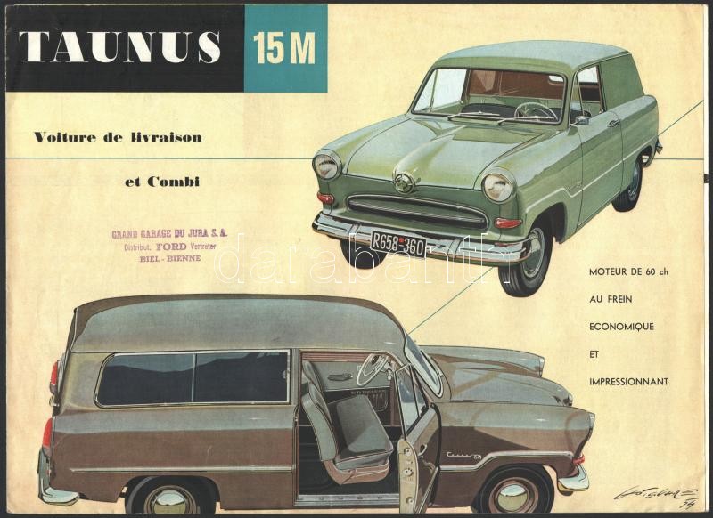 cca 1955-1959 Ford Taunus 15 M francia nyelvű személygépkocsi prospekt... https://www.darabanth.com/de/367-Fernauktion/367.0/Kunst-Dokumente-andere-Sammelgebiete/Drucksachen~31/cca-1955-1959-Ford-Taunus-15-M-francia-nyelvu-szemelygepkocsi-prospektus-illusztraciokkal~II2109431