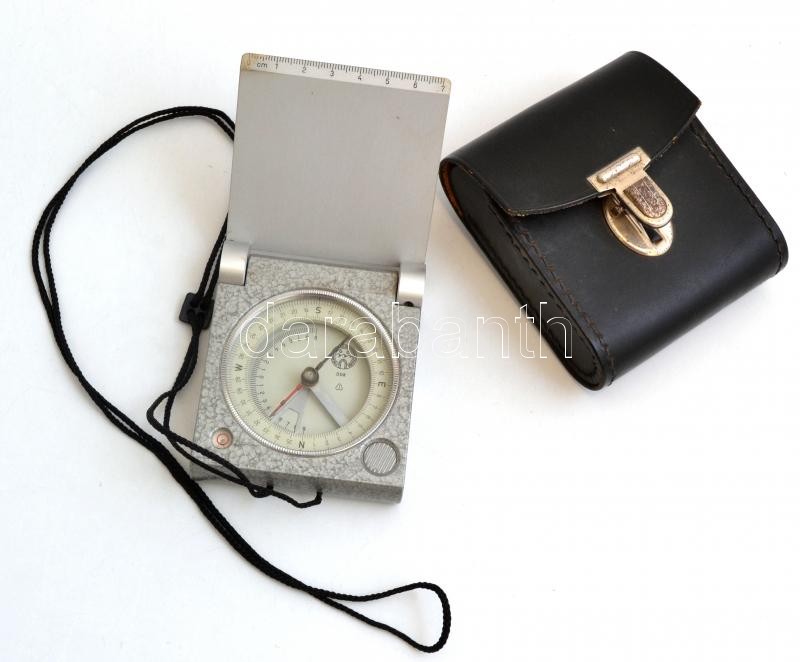 Beschreibung: NDK kompasz, bőr tokban, 9×9 cm