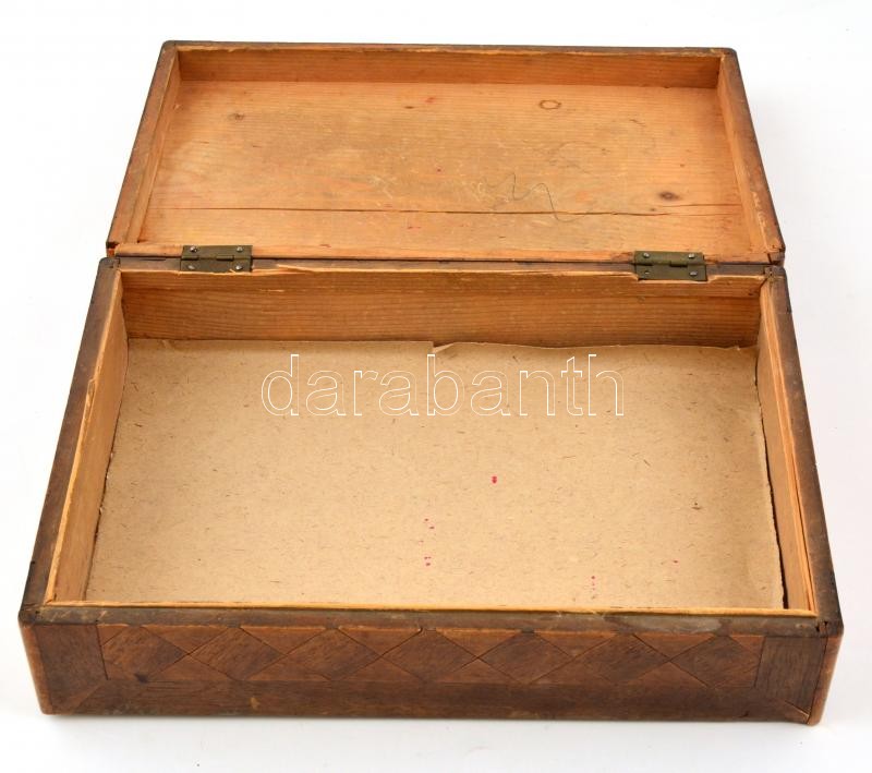 Régi intarziás fadoboz, sérült, 29x19x8 cm https://www.darabanth.com/de/367-Fernauktion/367.0/Kunst-Dokumente-andere-Sammelgebiete/Flohmarkt~12/Regi-intarzias-fadoboz-serult-29x19x8-cm~II2127128