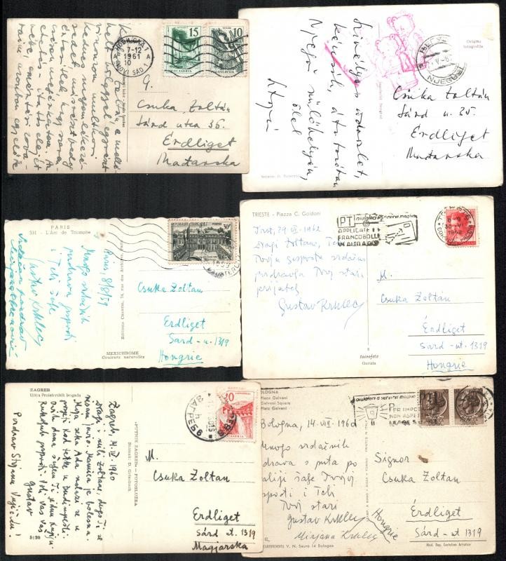 Beschreibung: Csuka Zoltán (1901-1984) vajdasági magyar költő, műfordítónak küldött képeslapok szerb íróktól, pl. Vujicsics D. Sztojántól, stb., 6 db