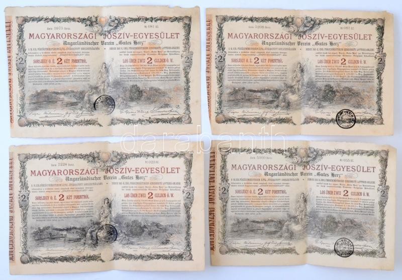 Beschreibung: Budapest 1888. "Magyarországi Jószív-Egyesület" sorsjegykölcsön 2Ft-ról, szárazpecséttel (4x) T:II-