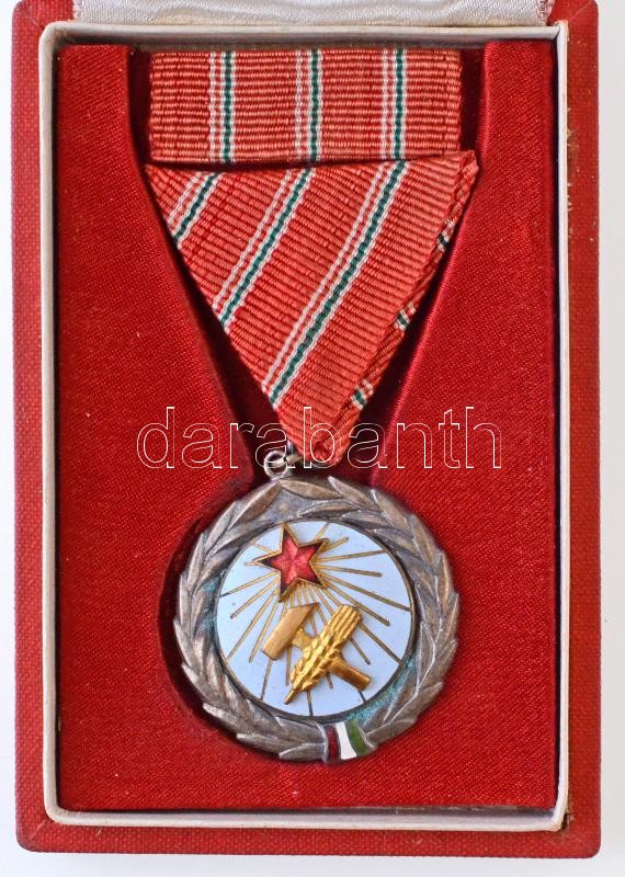 1954. Hungary "Labour Merit Medal" enamelled Br decoration, with ribbon and thin ribbon, in case with 1957. coat of arms, C:XF