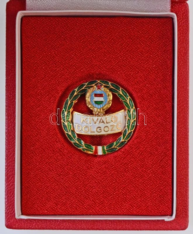 Beschreibung: ~1960-1980. "Kiváló Dolgozó" zománcozott jelvény, Kádár-címerrel, eredeti tokban (26mm) T:2