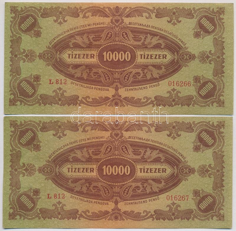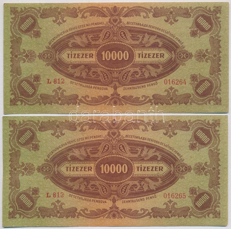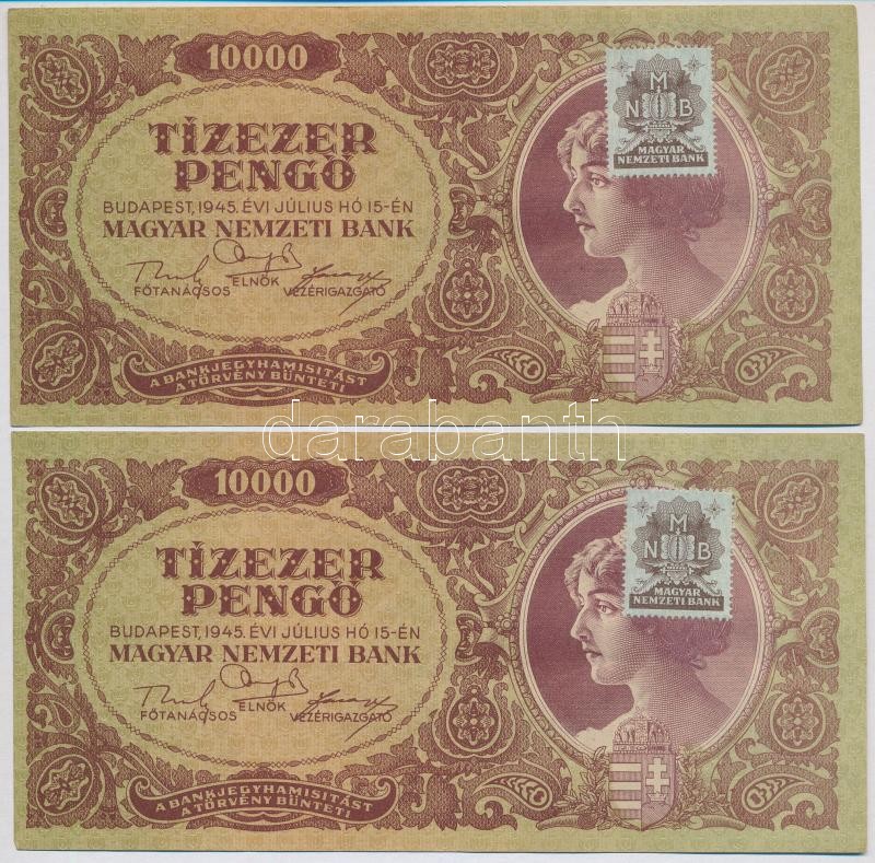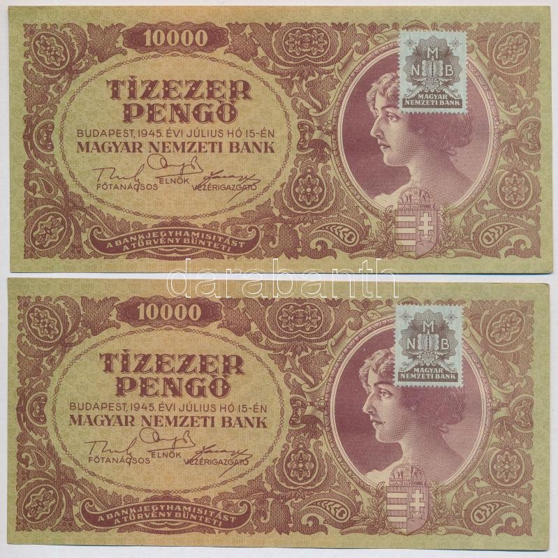1945. 10.000P "MNB" bélyeggel (4x) sorszámkövetők T:II https://www.darabanth.com/de/367-Fernauktion/367.0/Numismatik/Ungarische-Banknoten~2000007/1945-10000P-MNB-belyeggel-4x-sorszamkovetok-TII~II2126869