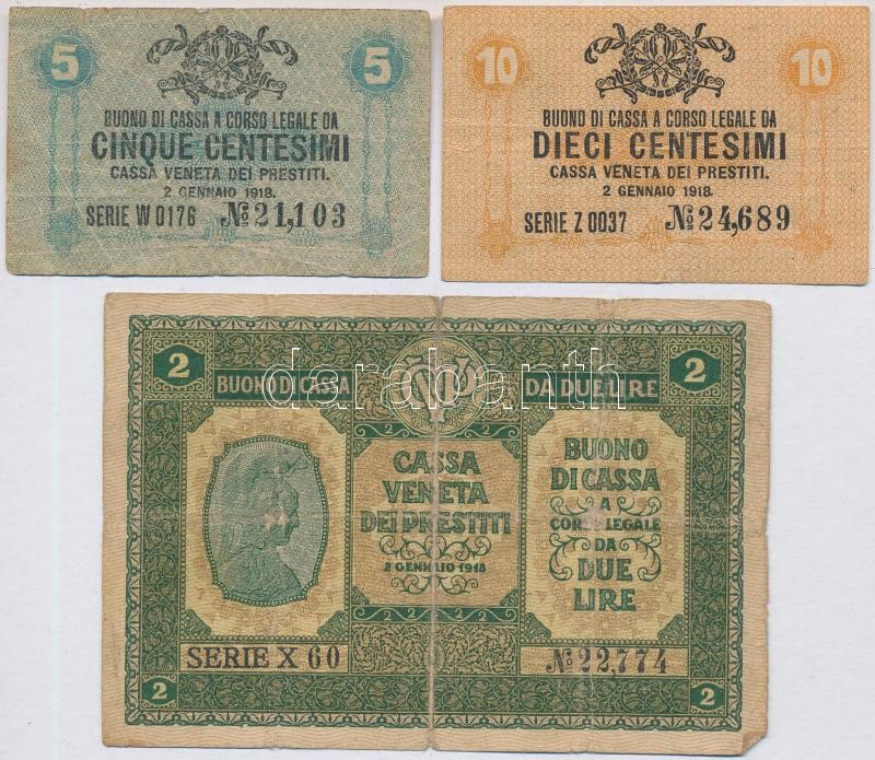 Olaszország / Velence / Osztrák-magyar megszállás 1918. 5c + 10c + 2L ... https://www.darabanth.com/de/367-Fernauktion/367.0/Numismatik/Weltweit-Banknoten~2000013/Olaszorszag-Velence-Osztrak-magyar-megszallas-1918-5c-plus-10c-plus-2L-TIV-Italy-Venice-Aus~II2131126