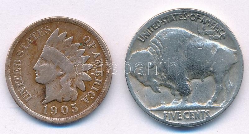Beschreibung: Amerikai Egyesült Államok 1905. 1c Br "Indián" + 1936. 5c CuNi "Buffalo" T:2- kis ph.