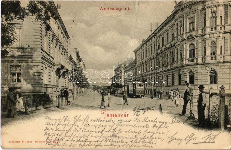 1900 Temesvár, Timisoara; Andrássy út, villamos / street, tram (EK) https://www.darabanth.com/de/368-Fernauktion/368.0/Ansichtskarten/Siebenburgen~500005/1900-Temesvar-Timisoara-Andrassy-ut-villamos-street-tram-EK~II2136566