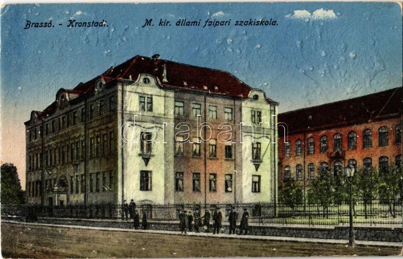 Beschreibung: Brassó, Kronstadt, Brasov; M. kir. állami faipari szakiskola. Grünfeld Vilmos kiadása / woodworking school, wood industry school (r)
