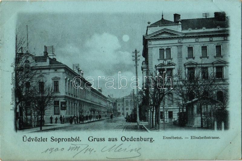1900 Sopron, Oedenburg; Erzsébet út este. Kummert L. 87. https://www.darabanth.com/de/368-Fernauktion/368.0/Ansichtskarten/Ungarn~500004/1900-Sopron-Oedenburg-Erzsebet-ut-este-Kummert-L-87~II2134910