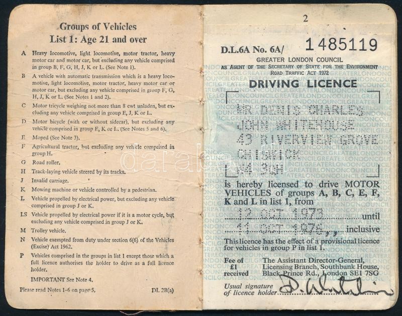 cca 1970-76 Nagy-Britannia jogosítvány (driving licence) https://www.darabanth.com/de/368-Fernauktion/368.0/Kunst-Dokumente-andere-Sammelgebiete/Dokument~1000019/cca-1970-76-Nagy-Britannia-jogositvany-driving-licence~II2132510