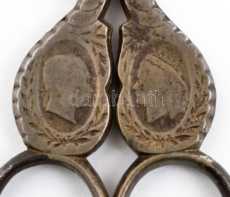Régi olló Ferenc József és Erzsébet királyné sziluettjével, h: 15 cm https://www.darabanth.com/de/368-Fernauktion/368.0/Kunst-Dokumente-andere-Sammelgebiete/Flohmarkt~1000012/Regi-ollo-Ferenc-Jozsef-es-Erzsebet-kiralyne-sziluettjevel-h-15-cm~II2135791