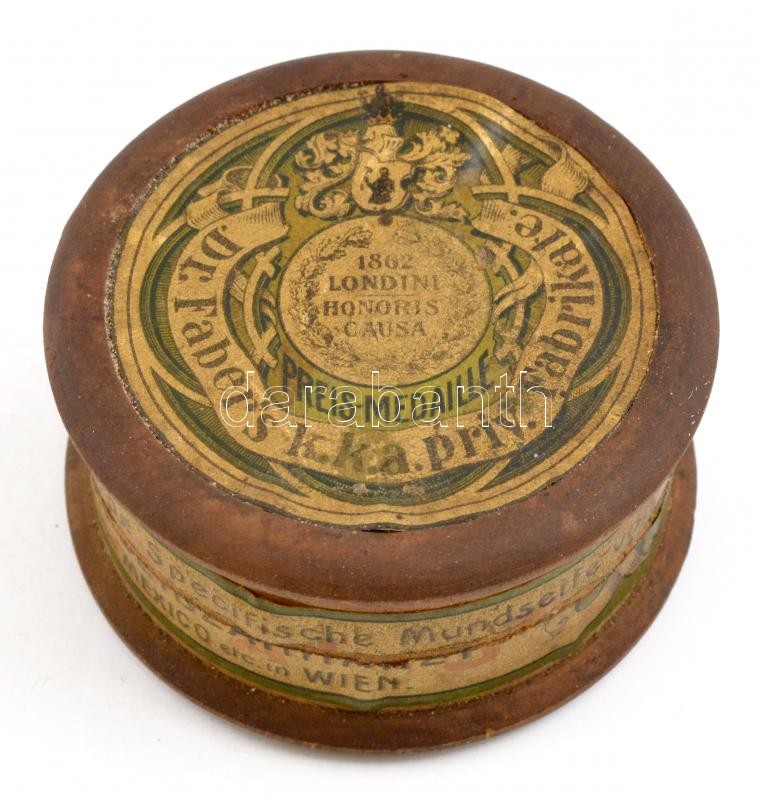 cca 1862 Dr Faber's k.k. a priv. Fabrikate, spezifische Mundseife, fogporos ('mundseife') fa dobozka, (Dr. Karl Maria Faber, I. Miksa mexikói császár fogorvosa), kopott, benne egészen kevés tartalommal, d: 6,5 cm, m: 3.5 cm
