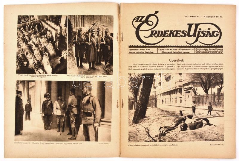 1917. május 20. Az Érdekes Újság V. évfolyamának 20. száma, benne számos katonai fotó az I. vh. szereplőiről, eseményeiről, fegyverekről, politikusokról, stb.