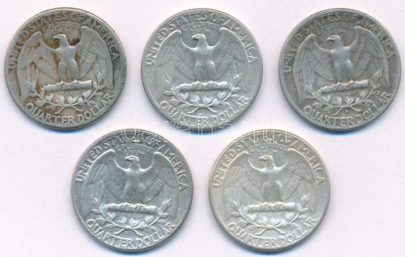 Amerikai Egyesült Államok 1948-1955. 1/4$ Ag "Washington" (5xklf) T:2-... https://www.darabanth.com/de/368-Fernauktion/368.0/Numismatik/Weltweit-Munzen~1500014/Amerikai-Egyesult-Allamok-1948-1955-14USD-Ag-Washington-5xklf-T2-patina-USA-1948-1955-14-~II2119540