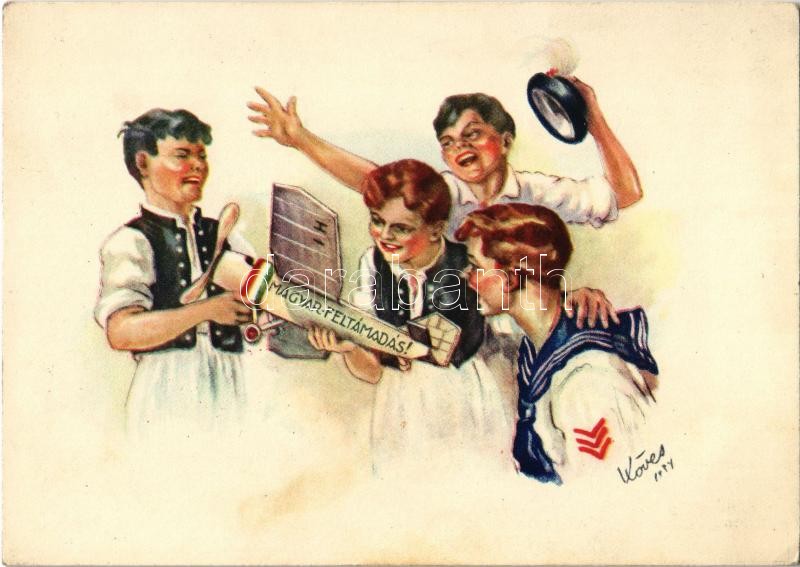 Magyar feltámadás! Szemükben a szent hit szent öröme fénylik, a Magyar Igazság fölrepül az égig! Kiadja a Magyar Nemzeti Szövetség, Magyar Földrajzi Intézet rt. / Hungarian irredenta propaganda, Justice for Hungary s: Köves