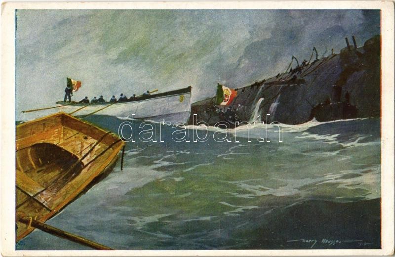 Beschreibung: Rettung der Bemannun des ital. Panzerkreuzers "Amalfi". K.u.K. Kriegsmarine / WWI Austro-Hungarian Navy, Italian Armored cruiser. Offizielle Karte für Rotes Kreuz, Kriegsfürsorgeamt, Kriegshilfsbureau. Österreichischen Flottenverein s: Harry Heusser