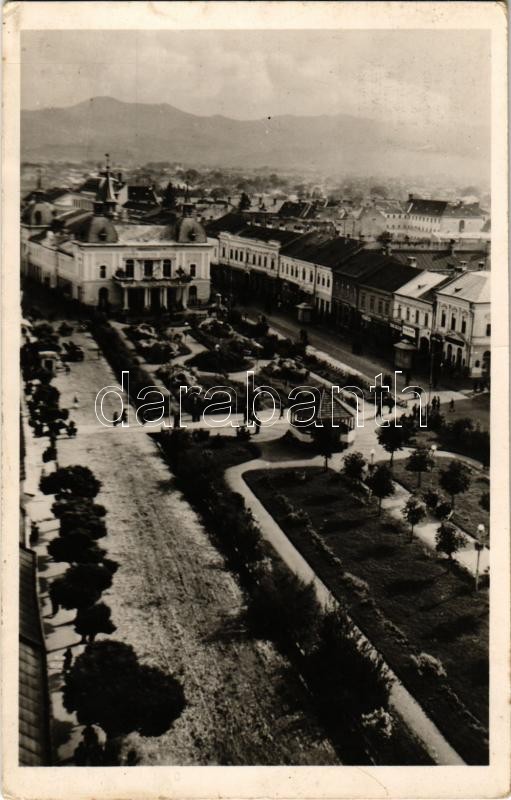 Beschreibung: 1941 Máramarossziget, Sighetu Marmatiei; Városi színház, Horthy Miklós tér, üzletek. Perl kiadása / theatre, square, shops (EK)