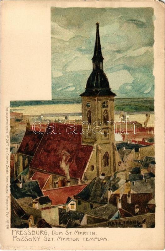 Pozsony, Pressburg, Bratislava; Dom St. Martin / Szent Márton templom. Hardtmuth E. kiadása / church. Kuenstlerpostkarte No. 2877. von Ottmar Zieher Kunstanstalt. litho s: Raoul Frank (EM)