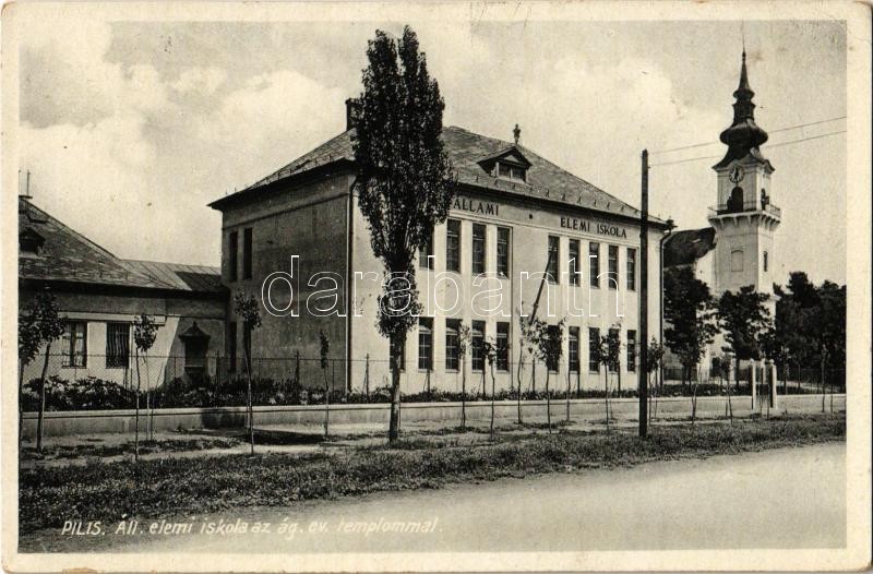 Pilis, Állami elemi iskola, ágostai evangélikus templom. Fantusz Izido... https://www.darabanth.com/de/369-Fernauktion/369.0/Ansichtskarten/Ungarn~1500004/Pilis-Allami-elemi-iskola-agostai-evangelikus-templom-Fantusz-Izidor-kiadasa-EK~II2148157