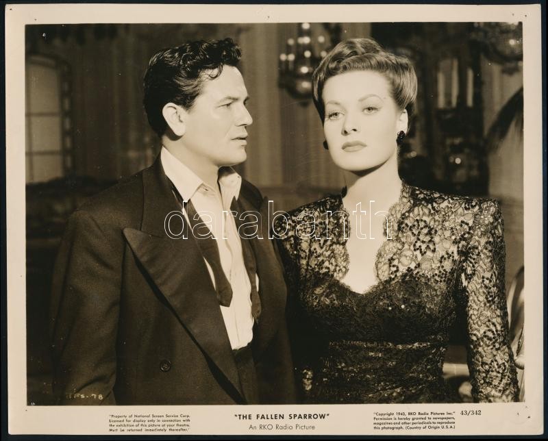 1943 The Fallen Sparrow, John Garfield és Maureen O'Hara, filmfotó, ra... https://www.darabanth.com/de/369-Fernauktion/369.0/Fotografie/Foto~500019/1943-The-Fallen-Sparrow-John-Garfield-es-Maureen-OHara-filmfoto-rajzszeg-utotte-lyukakkal-2~II2144855
