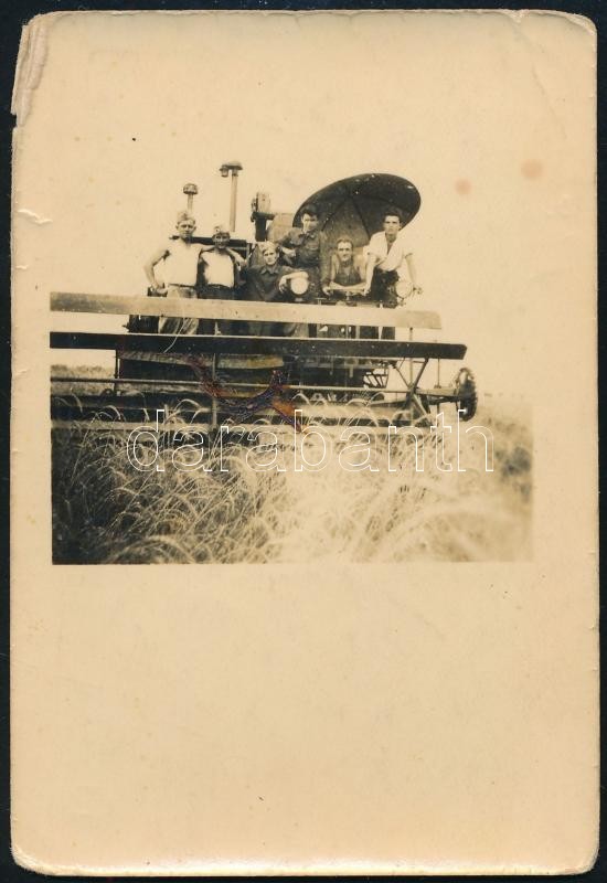 1946 Aratógép, fotó, felületén kis sérülésekkel, 9×6 cm https://www.darabanth.com/de/369-Fernauktion/369.0/Fotografie/Foto~500019/1946-Aratogep-foto-feluleten-kis-serulesekkel-9C3976-cm~II2142537