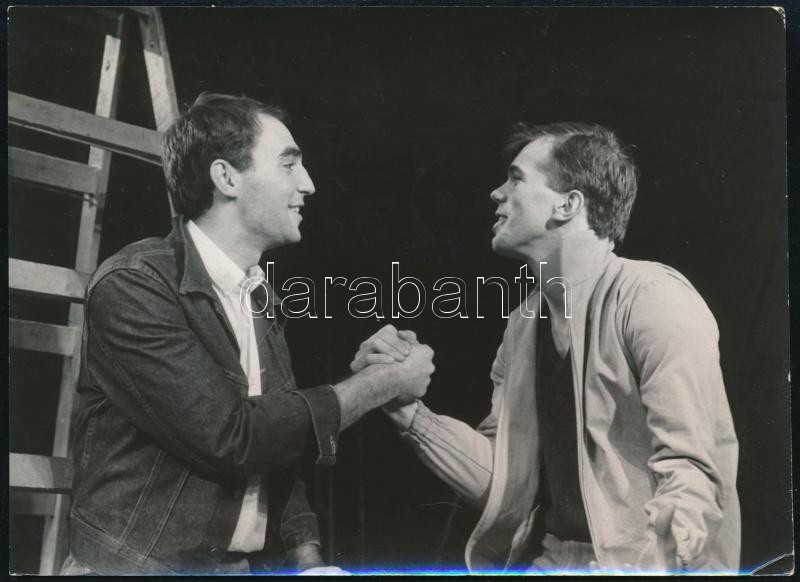 1980 Ruzsonyi Gábor (1980-): Kulka János (1958- ) és Bubik István (1958-2004) főiskolai végzős hallgatóként a West Side Story c. musical egyik jelentében (rendezte: Iglódi István), jelzés nélküli színpadi fotó, 13x17 cm
