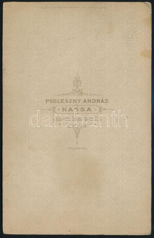 Beschreibung: cca 1885 Kassa, Podleszny András fényképész műtermében készült vintage fotó, kabinetfotó méretben, 16,5x10,6 cm