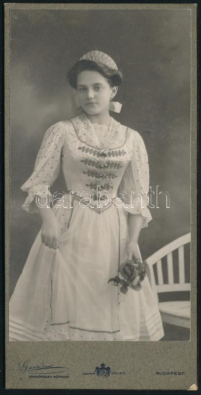 Beschreibung: cca 1910 Budapest, Ganz fényképészeti műteremben készült, vintage fotó, Széky Flóra felirattal, 16,4x8,1 cm