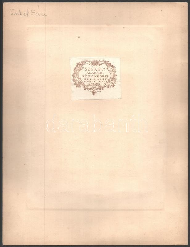 cca 1920-30 Székely Aladár (1870-1940) által aláírt, vintage női portré, fotó kartonra kasírozva, apró szakadással, hátoldalán feliratozott (Imhof Sári) és Székely Aladár címkéjével jelzett, 23x16,5 cm