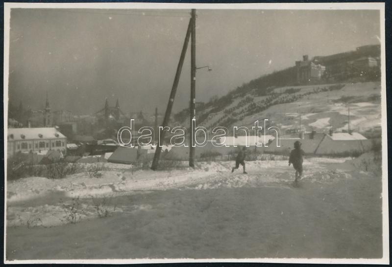 Beschreibung: cca 1930 Budapest, Tabán, kilátás az Erzsébet hídra, fotó, 5,5×8 cm