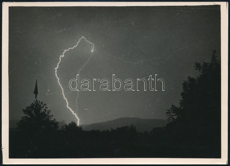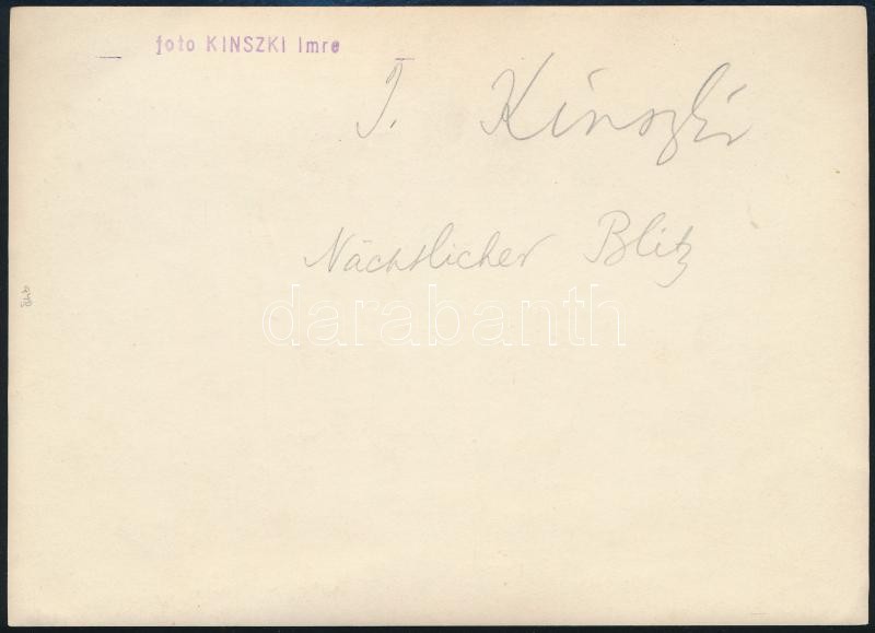 Beschreibung: cca 1934 Kinszki Imre (1901-1945) budapesti fotóművész hagyatékából, pecséttel jelzett, aláírt vintage fotó (Nächtlicher Blitz), 13x18 cm