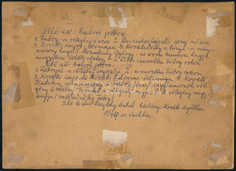 cca 1940 Esküvői csoportképe, hátoldalon a résztevők neveivel, kartonr... https://www.darabanth.com/de/369-Fernauktion/369.0/Fotografie/Foto~500019/cca-1940-Eskuvoi-csoportkepe-hatoldalon-a-resztevok-neveivel-kartonra-ragasztott-foto-16C397~II2130163