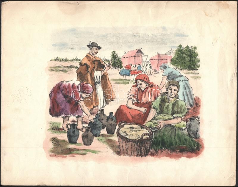 Jelzés nélkül: Piac. Akvarellel színezett litográfia, papír, szélein s... https://www.darabanth.com/de/369-Fernauktion/369.0/Gemalde-und-Grafiken/Gemalde-und-Grafiken~2000024/Jelzes-nelkul-Piac-Akvarellel-szinezett-litografia-papir-szelein-szakadasokkal-es-folto~II2137285