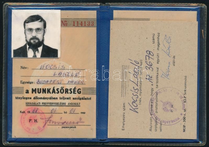 1988 Fényképes munkásőr igazolvány, szolgálati pisztoly átvételéről sz... https://www.darabanth.com/de/369-Fernauktion/369.0/Kunst-Dokumente-andere-Sammelgebiete/Dokument~500016/1988-Fenykepes-munkasor-igazolvany-szolgalati-pisztoly-atvetelerol-szolo-igazolassal~II2146458