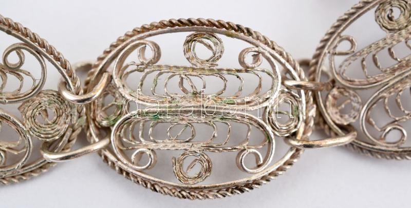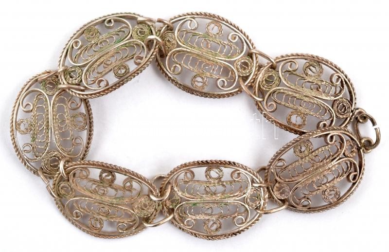 Ezüstözött fém karkötő filigrán díszítéssel, h: 14 cm https://www.darabanth.com/de/369-Fernauktion/369.0/Kunst-Dokumente-andere-Sammelgebiete/Flohmarkt~500011/Ezustozott-fem-karkoto-filigran-diszitessel-h-14-cm~II2150783
