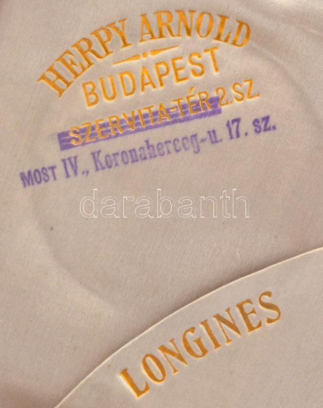 Régi Herpy Arnold Budapest, Longines zsebóra bőr doboz nyitható fedéll... https://www.darabanth.com/de/369-Fernauktion/369.0/Kunst-Dokumente-andere-Sammelgebiete/Werbungen~500020/Regi-Herpy-Arnold-Budapest-Longines-zsebora-bor-doboz-nyithato-fedellel-belsejeben-szoveten~II2146570