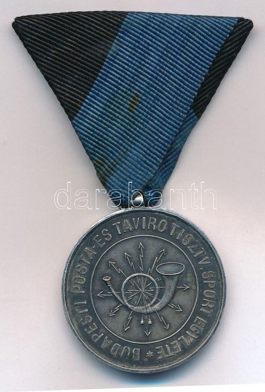 Beschreibung: Budapest DN "Budapesti Posta- És Távíró Tisztv. Sportegylete" jelzett Ag emlékérem "SGA" gyártói jelzéssel, eredeti szalaggal (19,15g/0.800/33mm) T:2