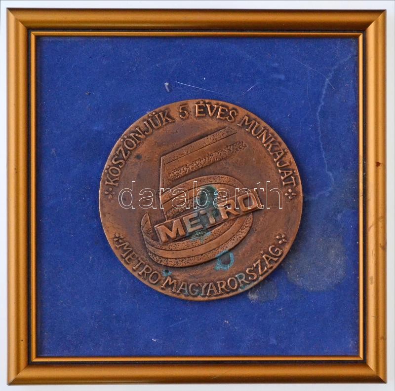 ~2000. "Köszönjük 5 éves munkáját - Metro Magyarország" egyoldalas, öntött Br plakett falra akasztható keretben (90mm) T:1- patina