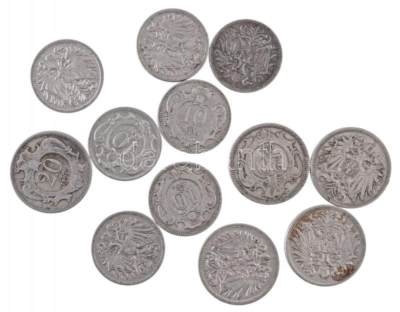 Austria 1893-1910. 10 Heller Ni (7x) + 1893-1911. 20 Heller Ni (5x) C:VF