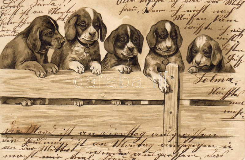 Beschreibung: Kutyás dombor Litho üdvözlőla